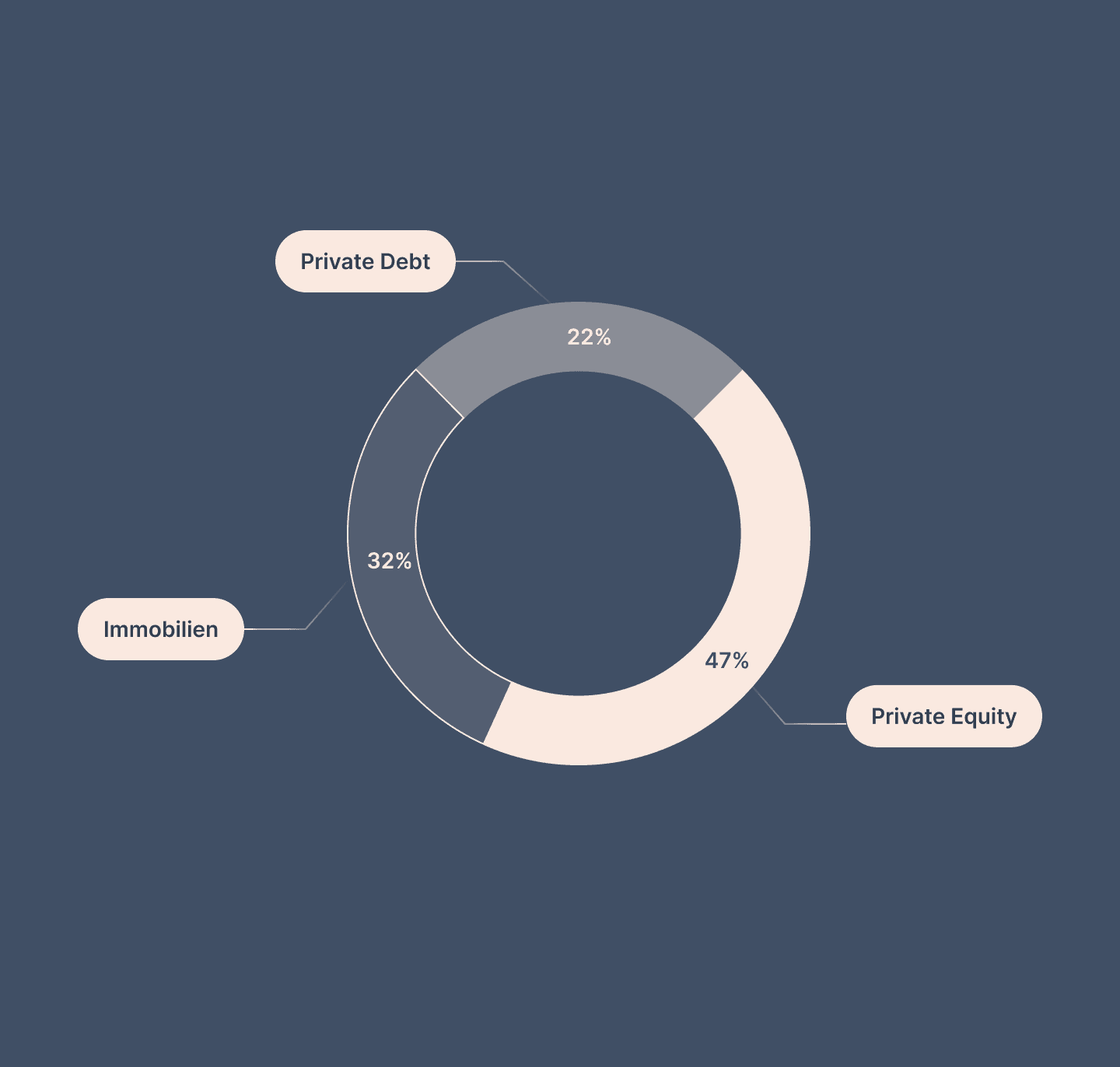 Unser Portfolio umfasst aktuell 22 sorgfältig ausgewählte Beteiligungen in den Anlageklassen Immobilien, Private Equity und Private Debt. Jede einzelne davon bietet das Potenzial, eine Rendite von mindestens 8% p.a. nach Kosten zu erzielen. Dank unserer Unabhängigkeit und Flexibilität können wir die Gewichtung unserer Investments jederzeit an die aktuelle Marktlage und neue Trends anpassen, um optimale Ergebnisse für unsere Anleger zu erzielen.